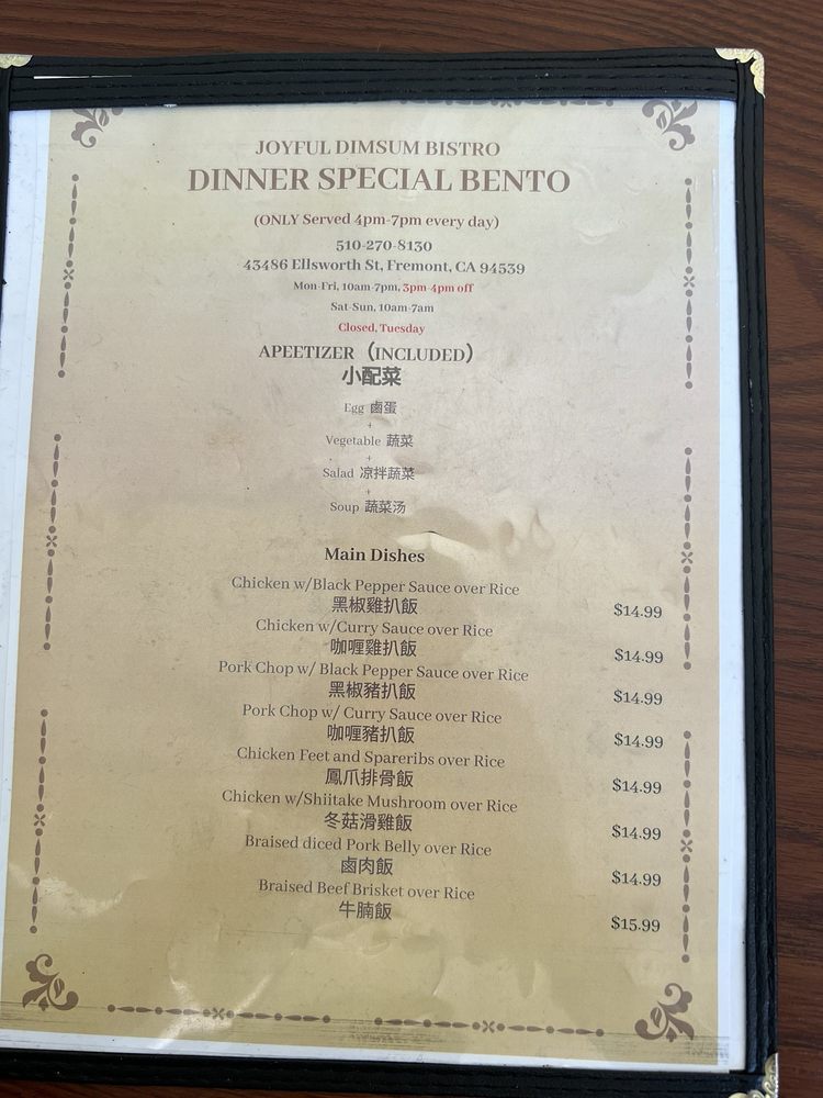 Welcome to Joyful Dim Sum Bistro, a delightful eatery where each dish tells a story of authentic flavors and culinary artistry. Nestled in Fremont, CA, this bistro specializes in classic dim sum, inviting patrons to indulge in an array of steamed buns, dumplings, and rice rolls that showcase both tradition and innovation.